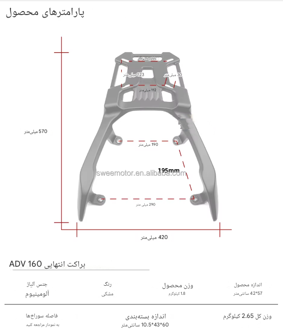 - ایمنی و پایداری در حمل بار: طراحی مهندسیشده این ترکبند، توزیع وزن بار را بهینه کرده و به حفظ تعادل و پایداری موتورسیکلت شما در هنگام حرکت، حتی در سرعتهای بالا یا مسیرهای ناهموار، کمک شایانی میکند.