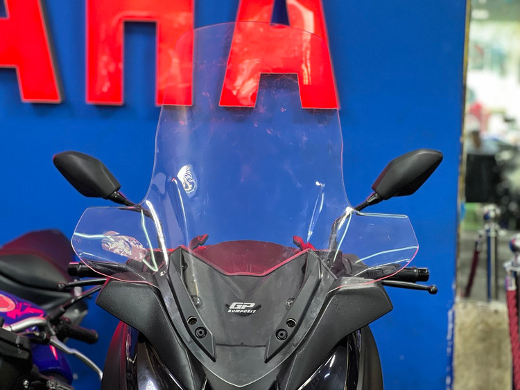 شیشه جلوی موتور سیکلت یک سواری راحت در برابر باد را امکان پذیر می کند