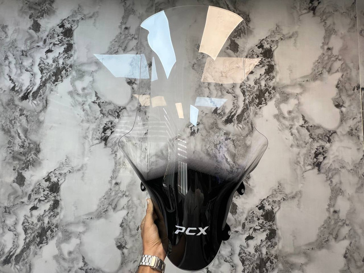 طلق شفاف 75cm مخصوص PCX150 مدل 2025 محصول کشور تایلند بوده و از مواد پلیکربنات با کیفیت بالا ساخته شده است این طلق در فرآیند صنعتی دقیق و با دستگاههای پیشرفته قالبگیری شده و هیچگونه اعوجاج یا موج در آن دیده نمیشود