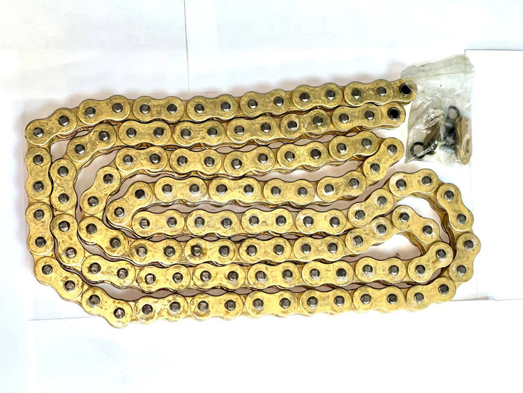 جنس زنجیر از فولاد آلیاژی سختکاریشده بوده که در برابر کشش، تنش و فشار ناشی از حرکت سریع موتور مقاومت بالایی از خود نشان میدهد. این آلیاژ در برابر سایش، زنگزدگی و تغییر شکل نیز بسیار مقاوم است.