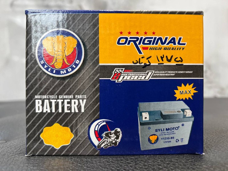 باتری موتورسیکلت 12V5A SYLIMOTO کوتاه / مناسب NMAX / AEROX/ MT15 / R15 / XSR / WR155