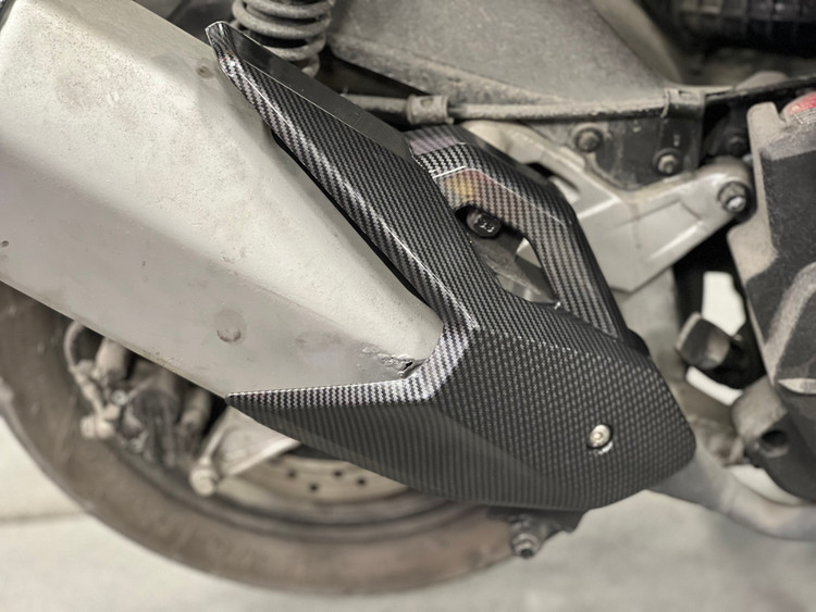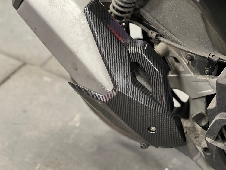 کاور اگزوز کربن ADV160 / ساخت تایلند اصل یک اکسسوری اورجینال و باکیفیت برای اسکوتر هوندا ADV160 است که علاوه بر ایجاد نمایی اسپرت و جذاب برای بخش عقب موتور نقش مهمی در محافظت از اگزوز ایفا میکند این قطعه با استفاده از فیبر کربن مرغوب و طراحی دقیق تولید شده و به طور کامل با فرم اگزوز ADV160 هماهنگ است تا نصب آن بدون هیچ تغییر یا دستکاری انجام شود