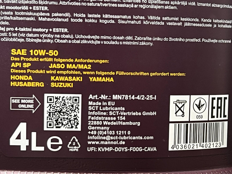محصول: روغن موتور MANNOL 4-Takt Motorbike 7814 10W-50 (مدل 4 لیتری)