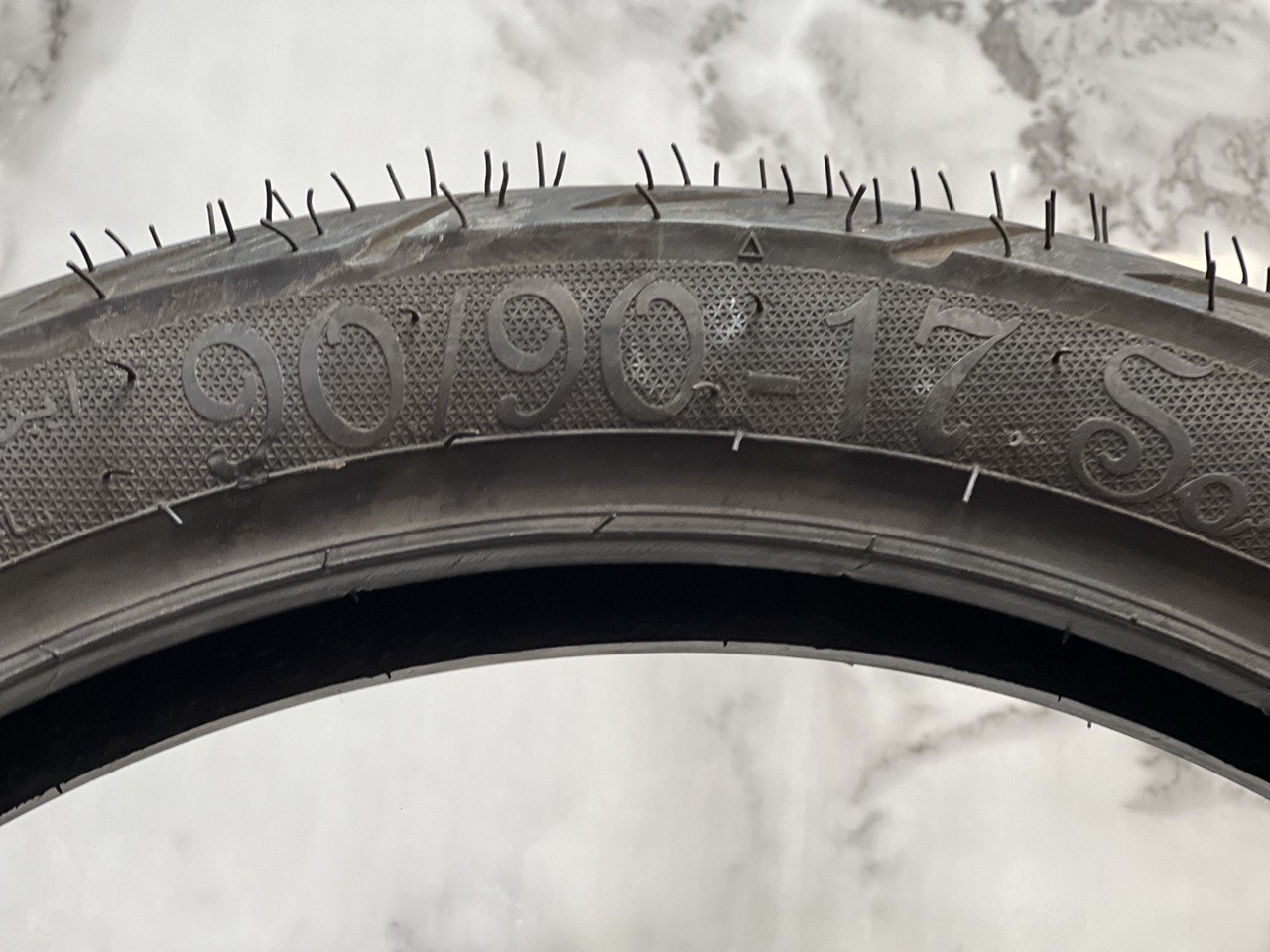 این لاستیک با درجه کارکرد زیر صفری (100 درصد سالم) عرضه میشود، به این معنا که آج کامل، دیواره سالم و فاقد هرگونه ترک، خشکی یا تغییر شکل است و از نظر فنی در وضعیت کاملاً استاندارد قرار دارد. سایز 90/90/17 یکی از سایزهای پرکاربرد برای چرخ جلو یا عقب بسیاری از موتورسیکلتهای سبک و نیمهسنگین شهری است.