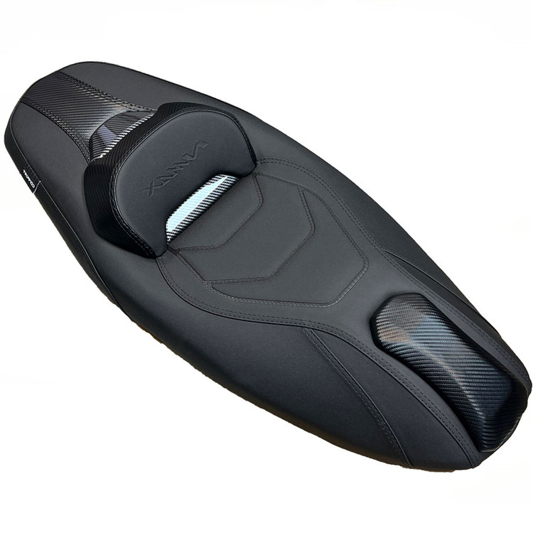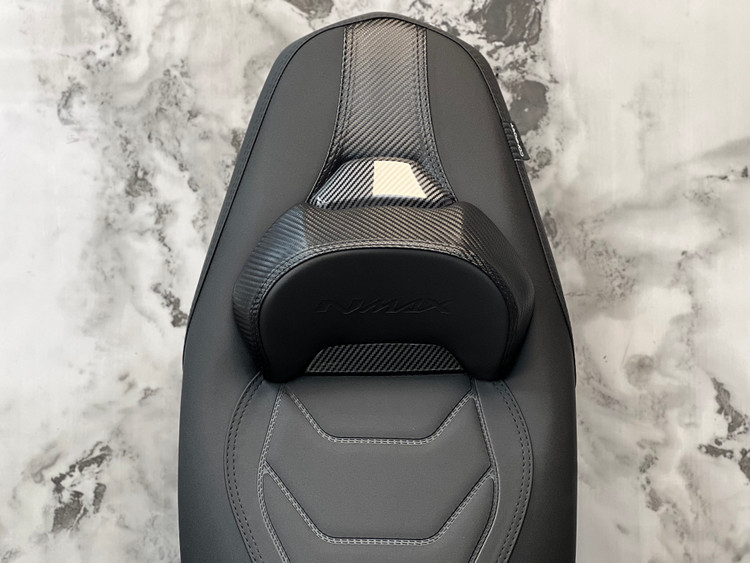 در مقابل زین اسپرت اسپیشیال کربن اصل ساخت تایلند با فوم استاندارد روکش مقاوم و طراحی اصولی راحتی پایدار ظاهر حرفهای و طول عمر بالا را برای N-MAX Turbo فراهم میکند