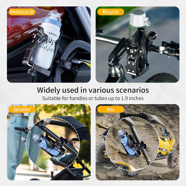 جالیوانی و نگهدارنده بطری Kewig با سازگاری گسترده طراحی شده و قابلیت نصب روی لولههایی با قطر 12 تا 47 میلیمتر را دارد این محصول مناسب استفاده روی موتور سیکلت اسکوتر دوچرخه وسایل نقلیه برقی خودروهای ATV کالسکه کودک و حتی ماشینهای گلف بوده و انتخابی کاربردی برای افرادی است که به دنبال یک نگهدارنده مقاوم و چندمنظوره هستند