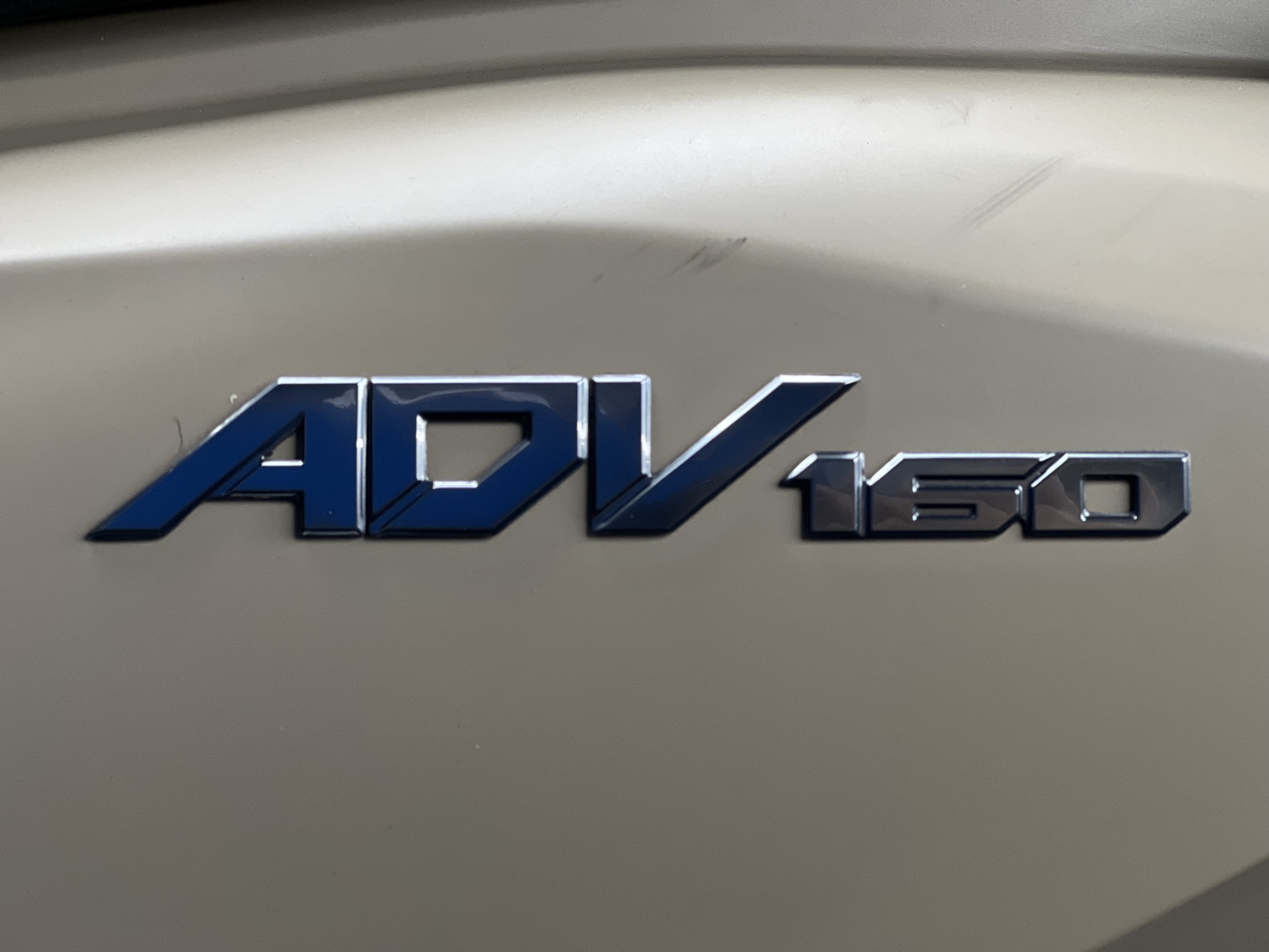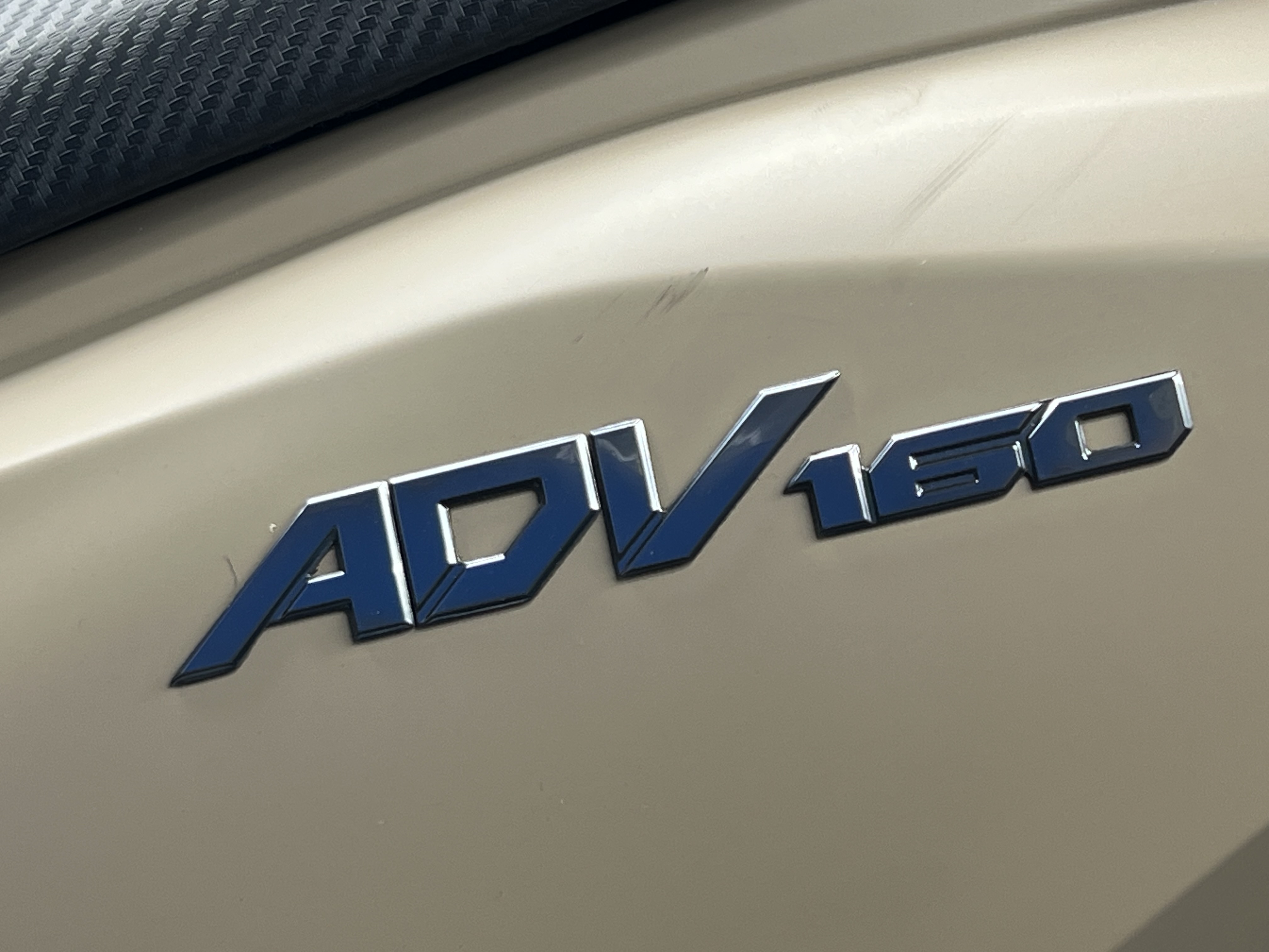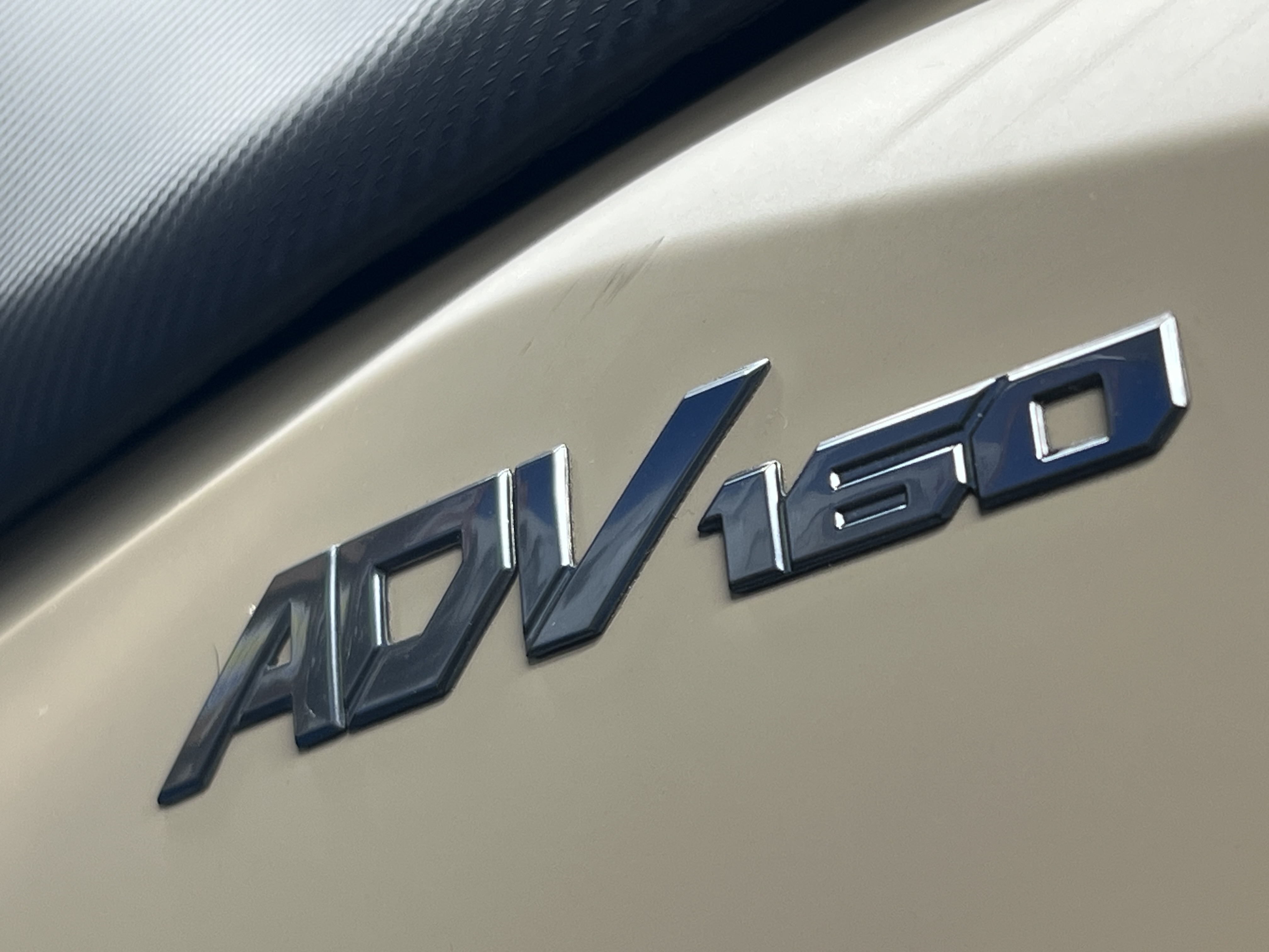 در ظاهر این آرم ترکیب زیبایی از سادگی و قدرت دیده میشود که کاملاً متناسب با طراحی مدرن بدنه ADV160 است رنگ استیل آن بهویژه روی بدنههای سفید، خاکستری و نقرهای جلوه بسیار خاصی ایجاد میکند و هماهنگی کاملی با قطعات تیره رنگ دیگر مانند فلاپهای کناری یا قاب کیلومتر دارد