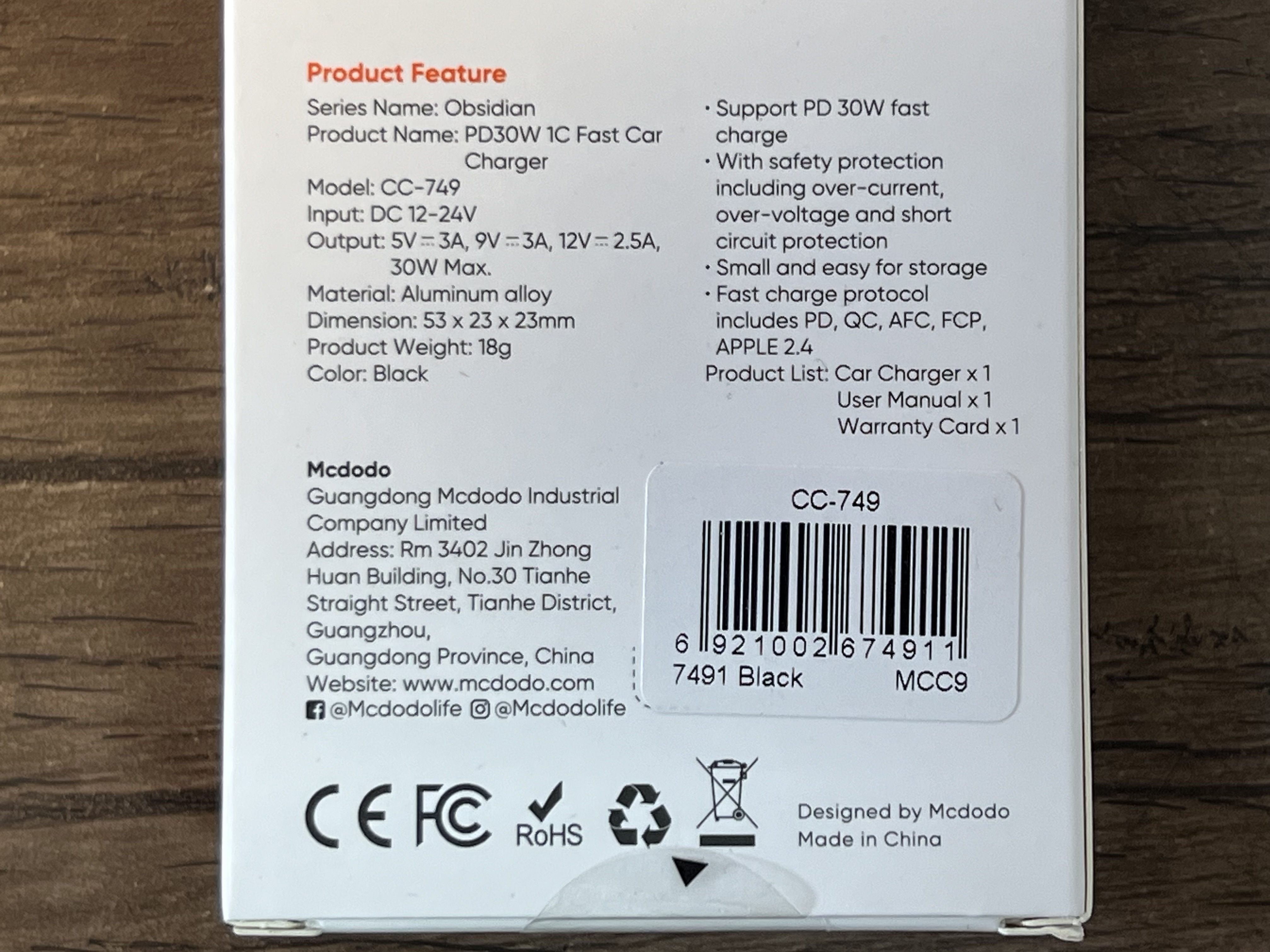 شارژر فندکی ۳۰ وات مکدودو (Mcdodo) مدل CC-7491 |