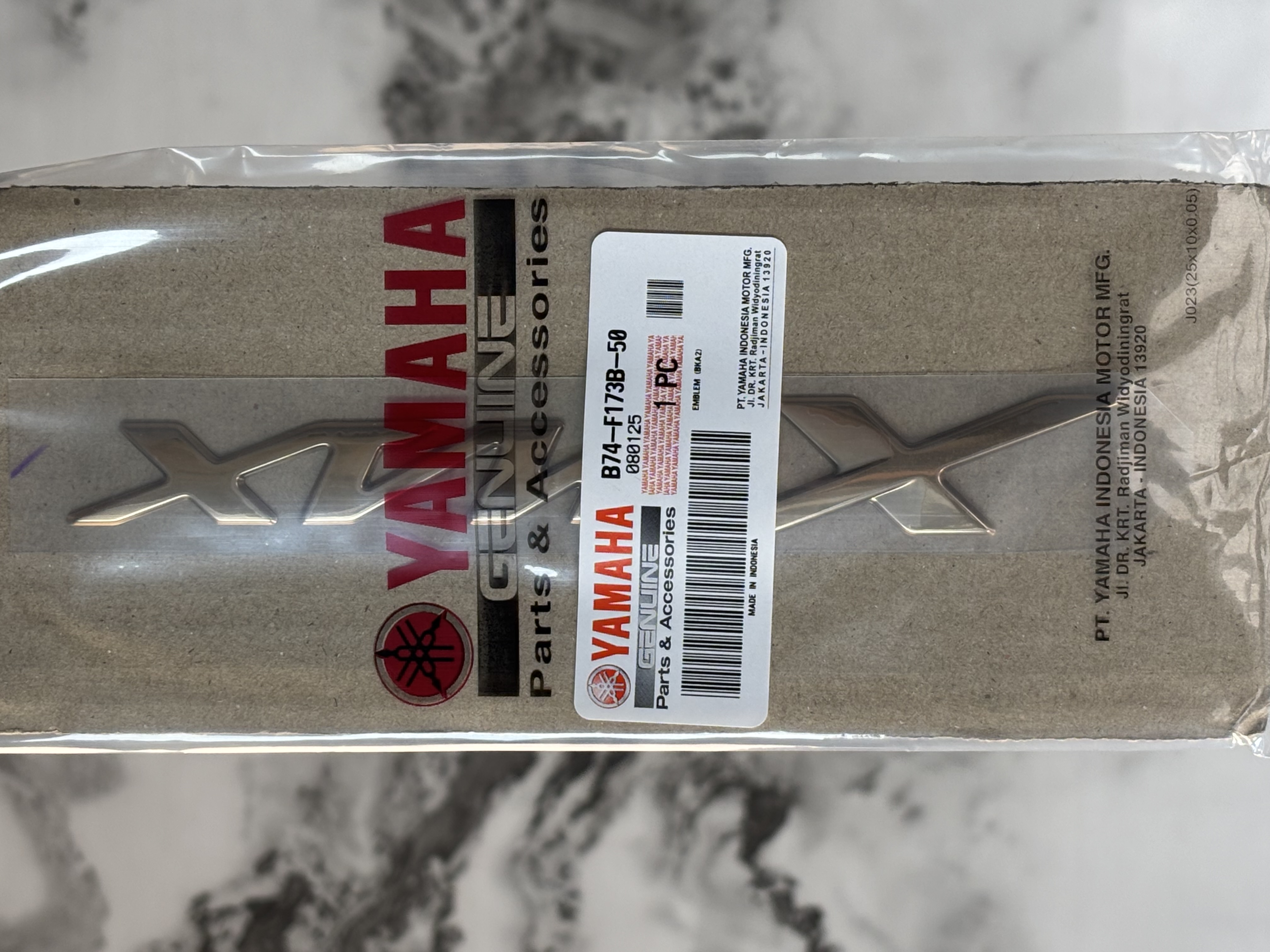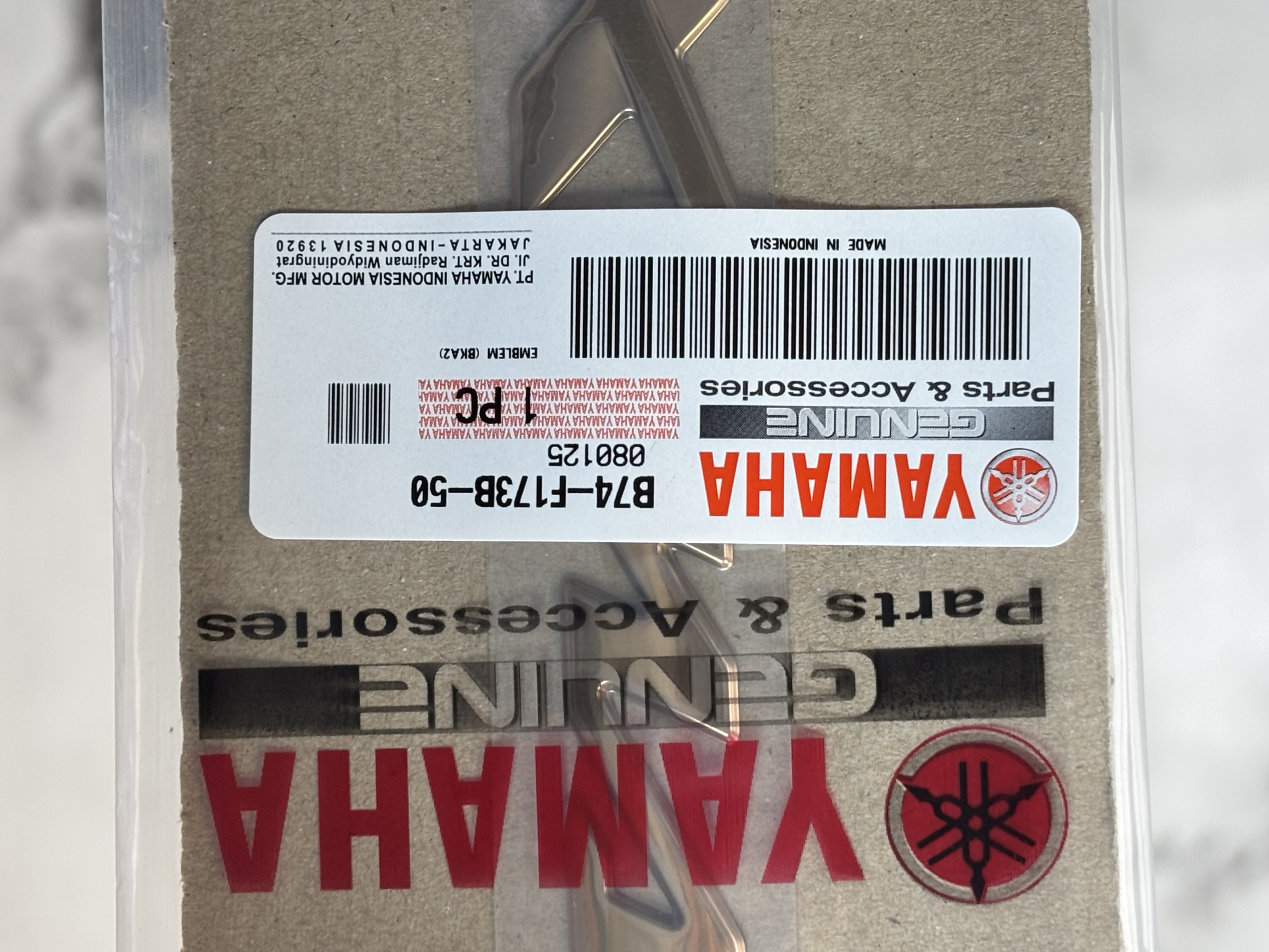نسخه ساخت اندونزی اصل فابریکی از نظر کیفیت تولید دقیقاً مطابق استاندارد کارخانه یاماها ساخته شده و از لحاظ ابعاد ضخامت فونت زاویه برجستگی و فاصله حروف کاملاً مشابه نمونه فابریک روی بدنه میباشد به همین دلیل بعد از نصب کاملاً کارخانه ای و یکدست دیده میشود و هیچ تفاوتی از نظر قالب و فرم با نمونه اورجینال ندارد در حالی که مدل های فیک بازار معمولاً فونت ناهماهنگ برجستگی بیش از حد یا کم و فاصله حروف غیر استاندارد دارند که هنگام نصب کاملاً مشخص میشود