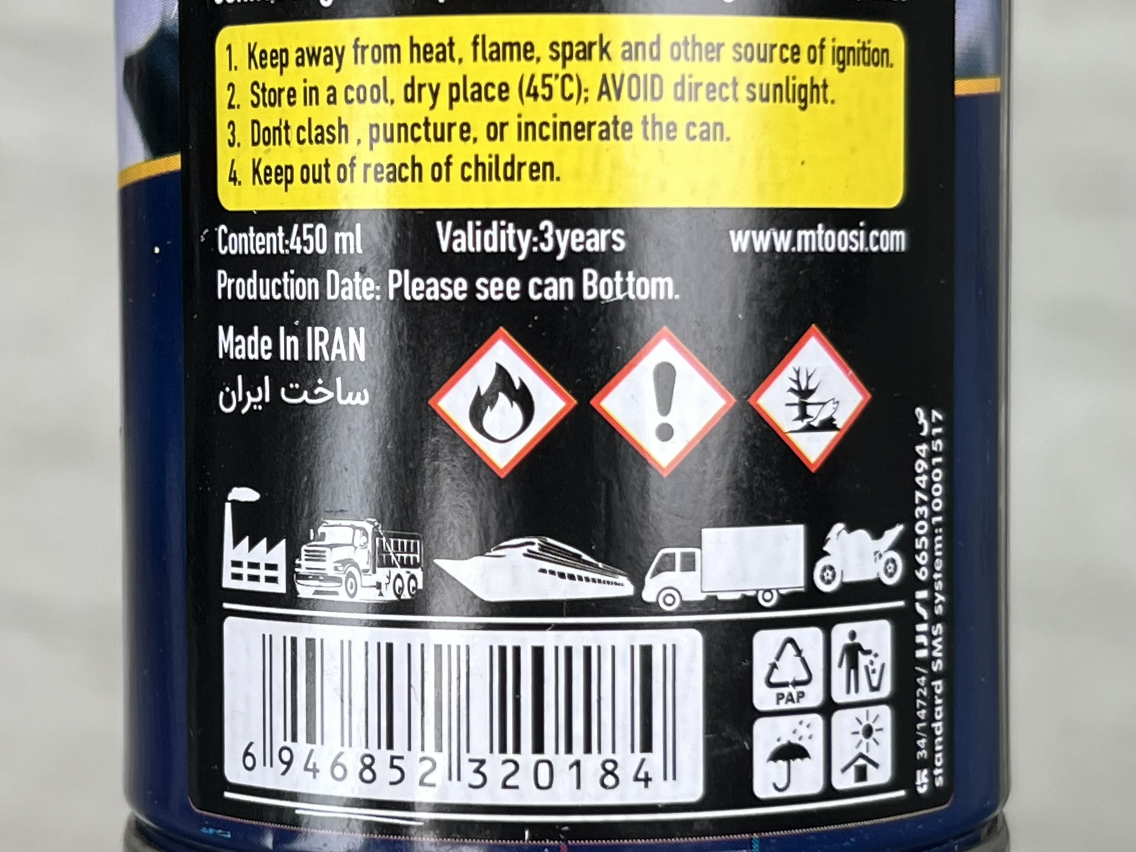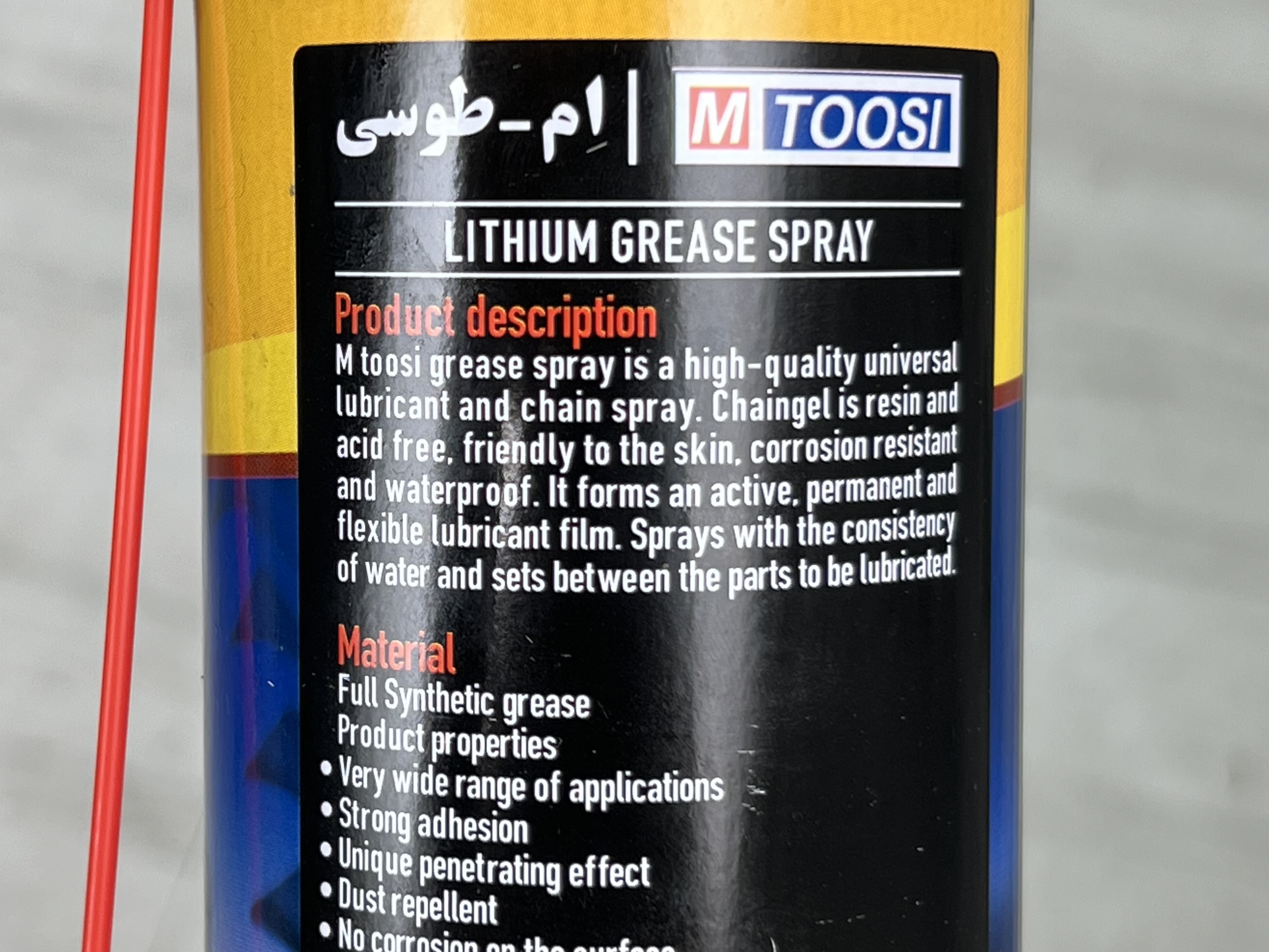 اسپری گریس لیتیوم ام طوسی یک محصول مقاوم در برابر آب با چسبندگی عالی است. m- toosi روی سطوح فلزی به خوبی اجرا می شود و عملکرد حفاظتی عالی از سطوح را تضمین می کند.