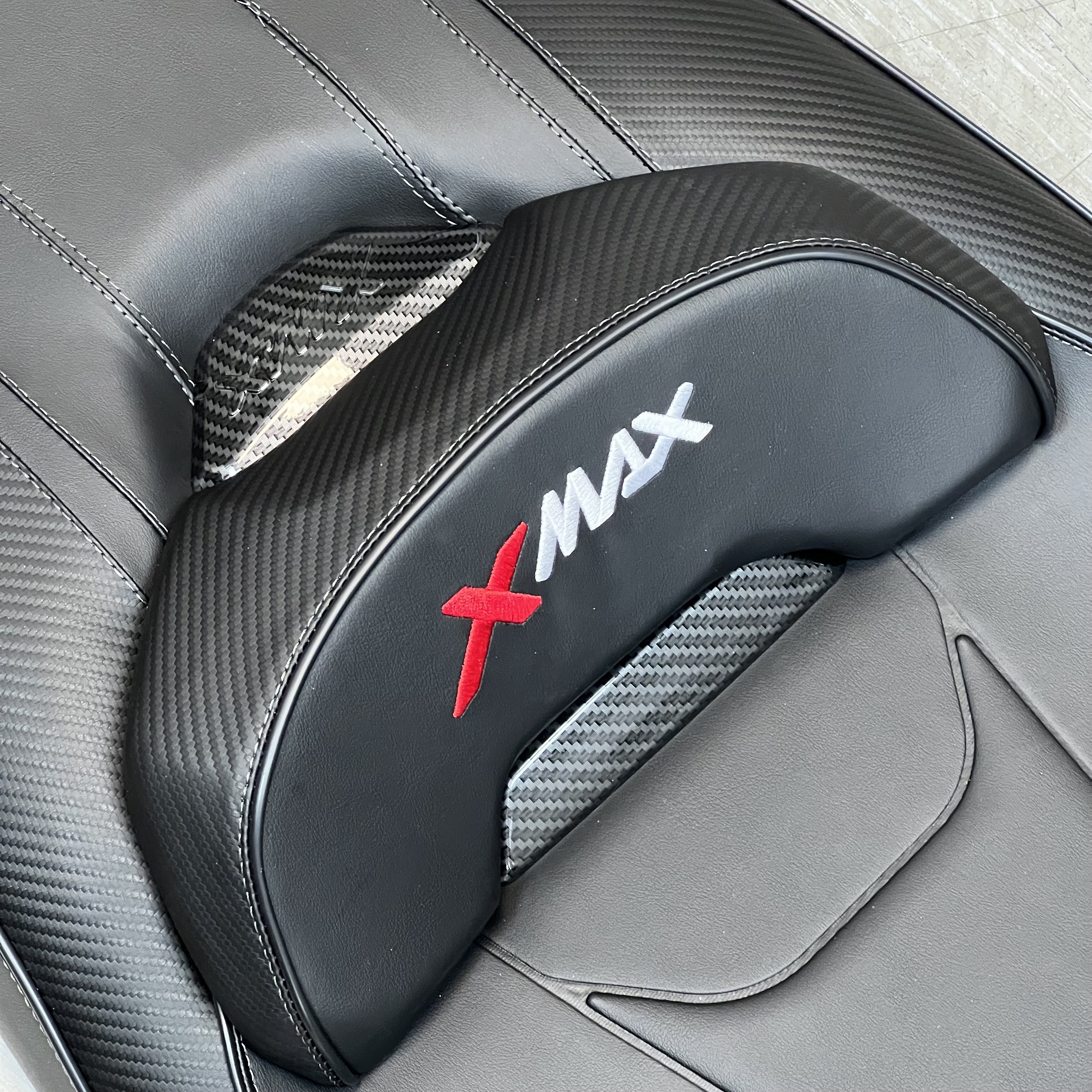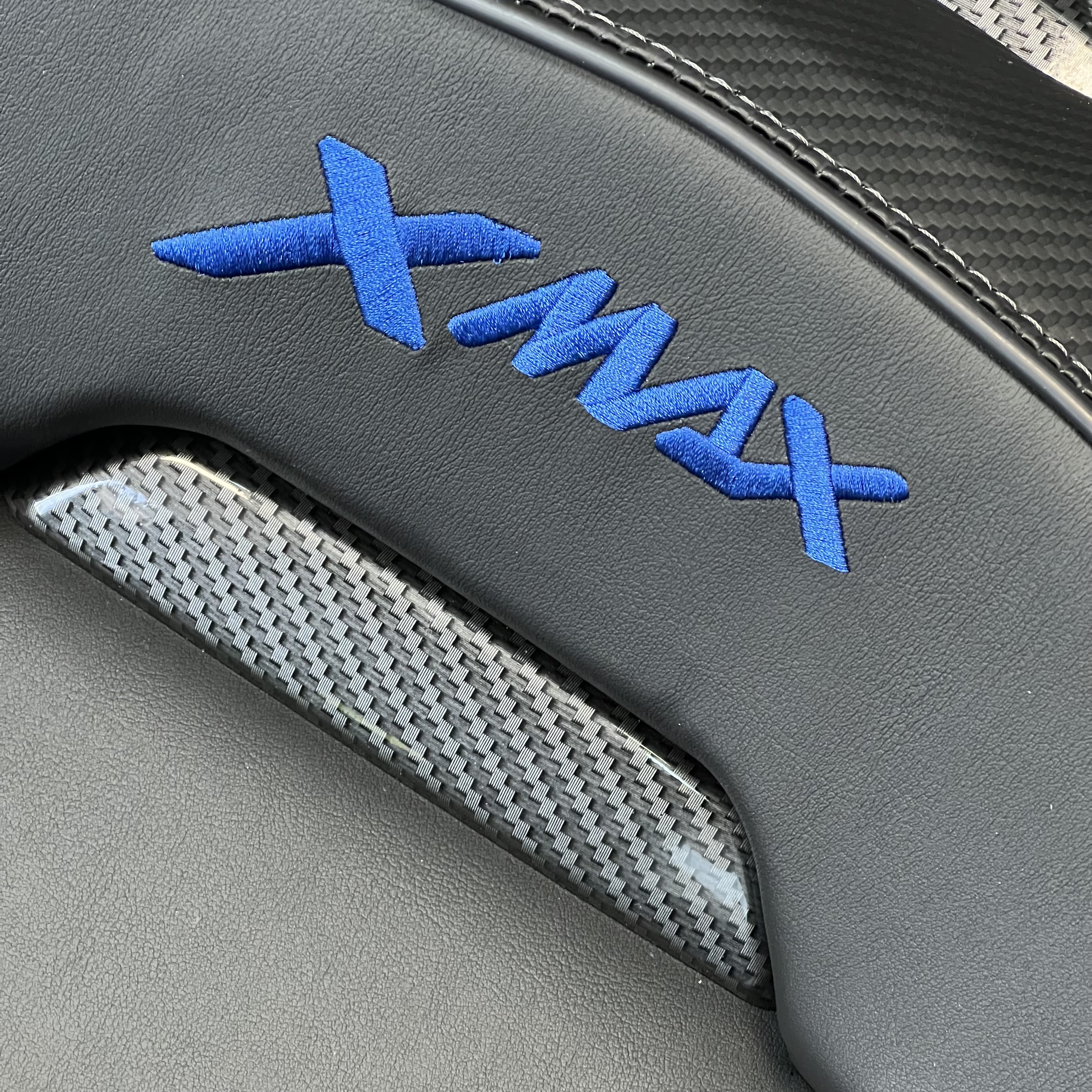 تفاوت رنگ، بافت و اجرای طرح کربن در نمونه اصلی کاملاً مشخص است و جلوهای شیک، اسپرت و هماهنگ با طراحی XMAX ایجاد میکند.