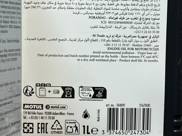- توصیه شده برای موتورهای خاص: این روغن موتور برای موتورسیکلتهای SUZUKI، YAMAHA، KAWASAKI، HONDA، و KTM که به روغنی با گرید SAE 10W-40 نیاز دارند، بسیار مناسب است.