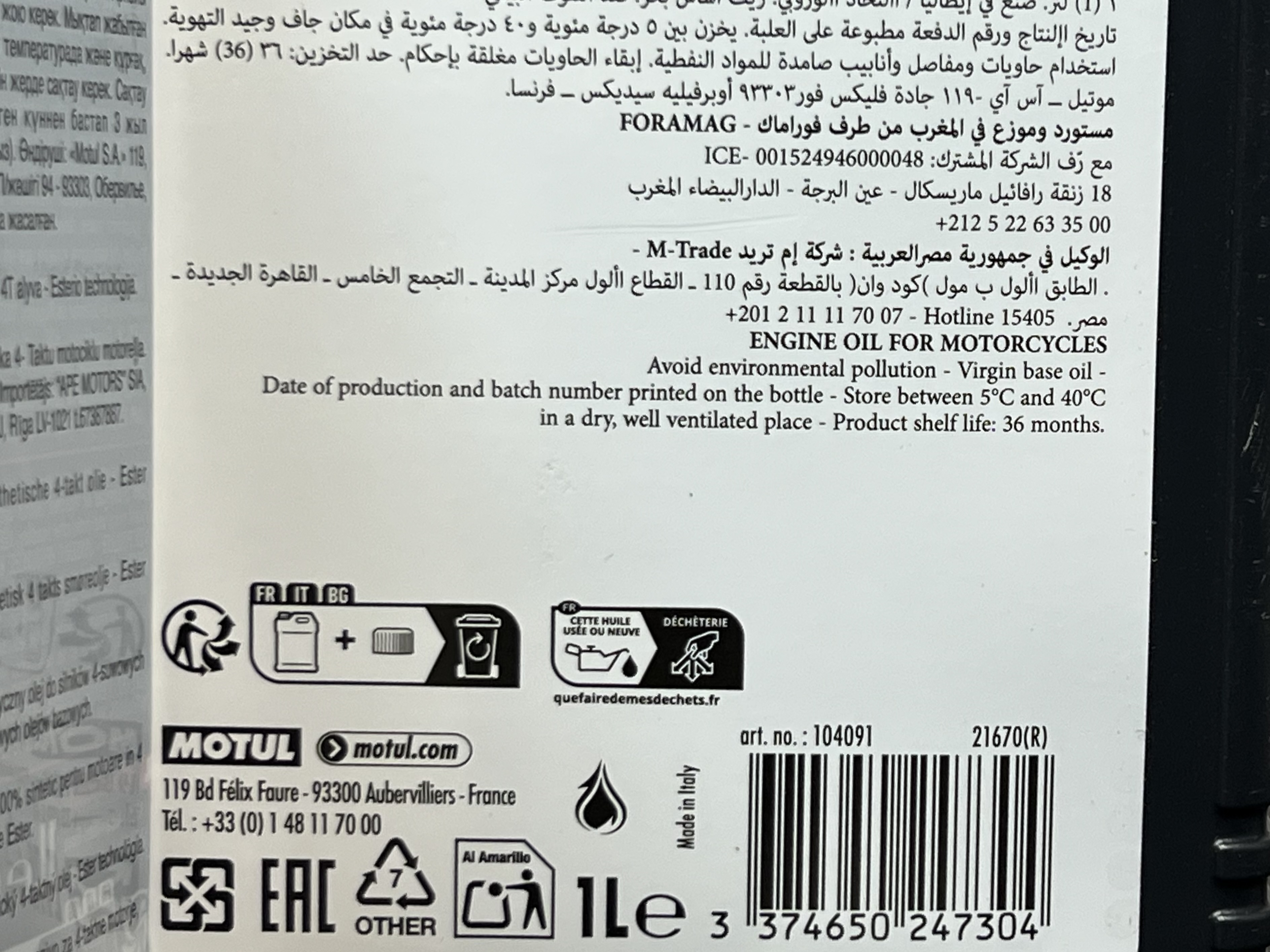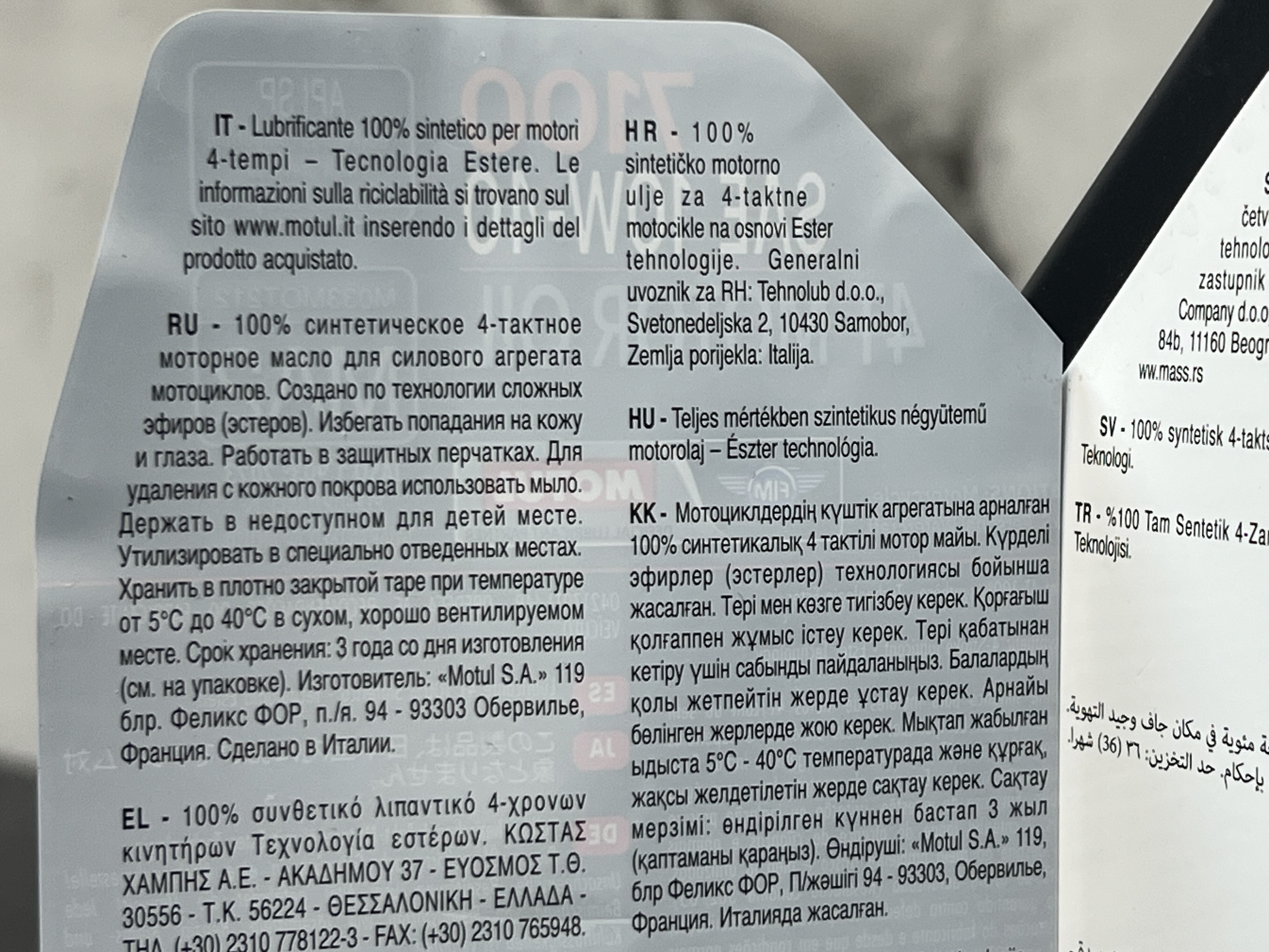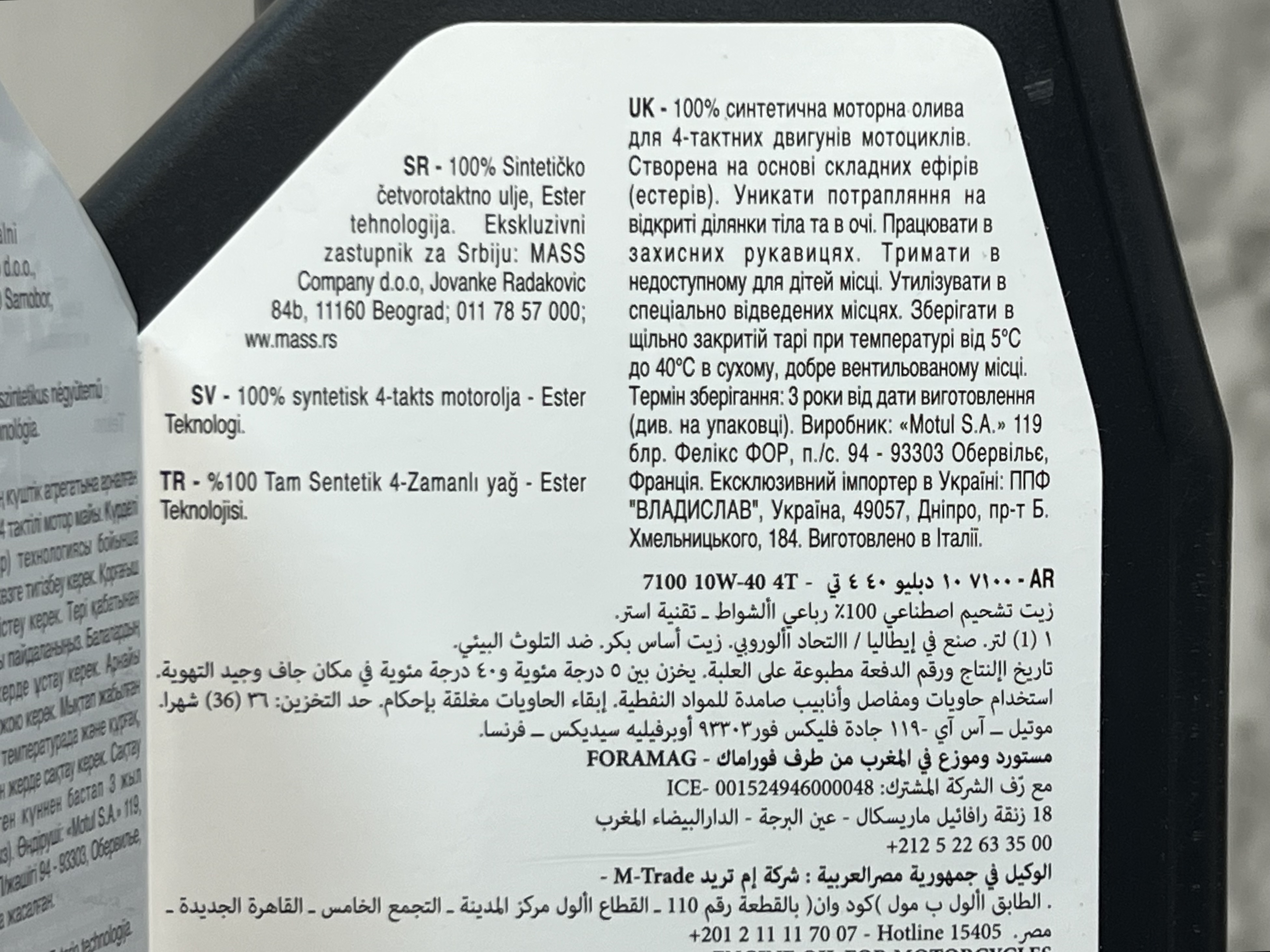 روغن موتور مخصوص موتور های دنده ای موتول 10W40 مدل 7100 MOTUL / ساخت فرانسه اصل کد ۲۰۱۱۱۸
