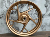رینگ جلو از آلیاژهای باکیفیت ساخته شده که علاوه بر دوام بالا، باعث عملکرد بهتر و تعادل فوقالعاده موتور شما میشود. رنگ طلایی این رینگ جلو ظاهری شیک و جذاب به موتور شما میبخشد و در کنار اصالت کالا که به وسیله بارکد قابل استعلام است، خیال شما از بابت کیفیت و اورجینال بودن محصول راحت خواهد بود.