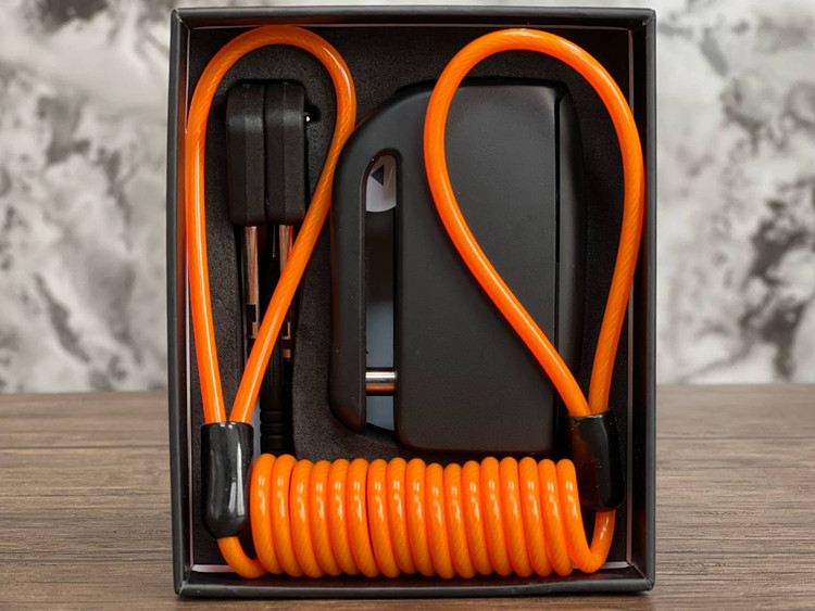 - کابل فولادی با روکش سیلیکونی به طول 1.2 متر که به شما یادآوری میکند قفل دیسک را باز کنید.